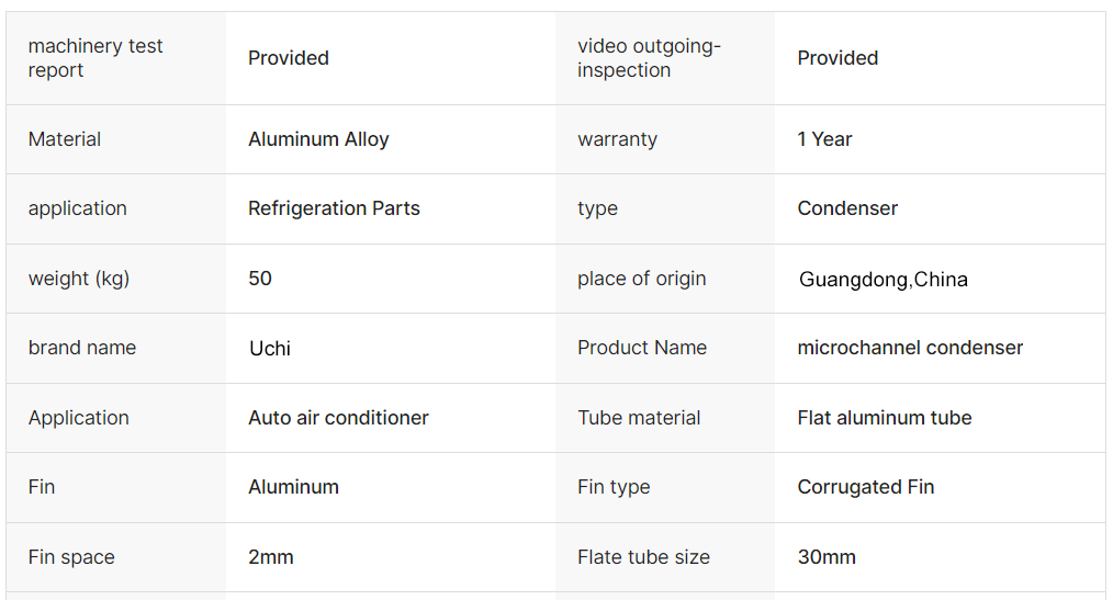 Type : microchannel condenser